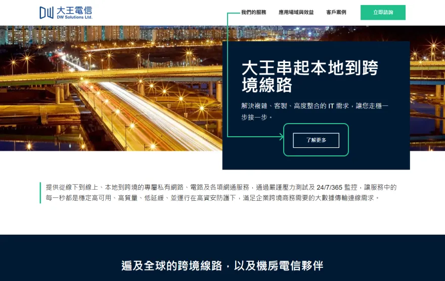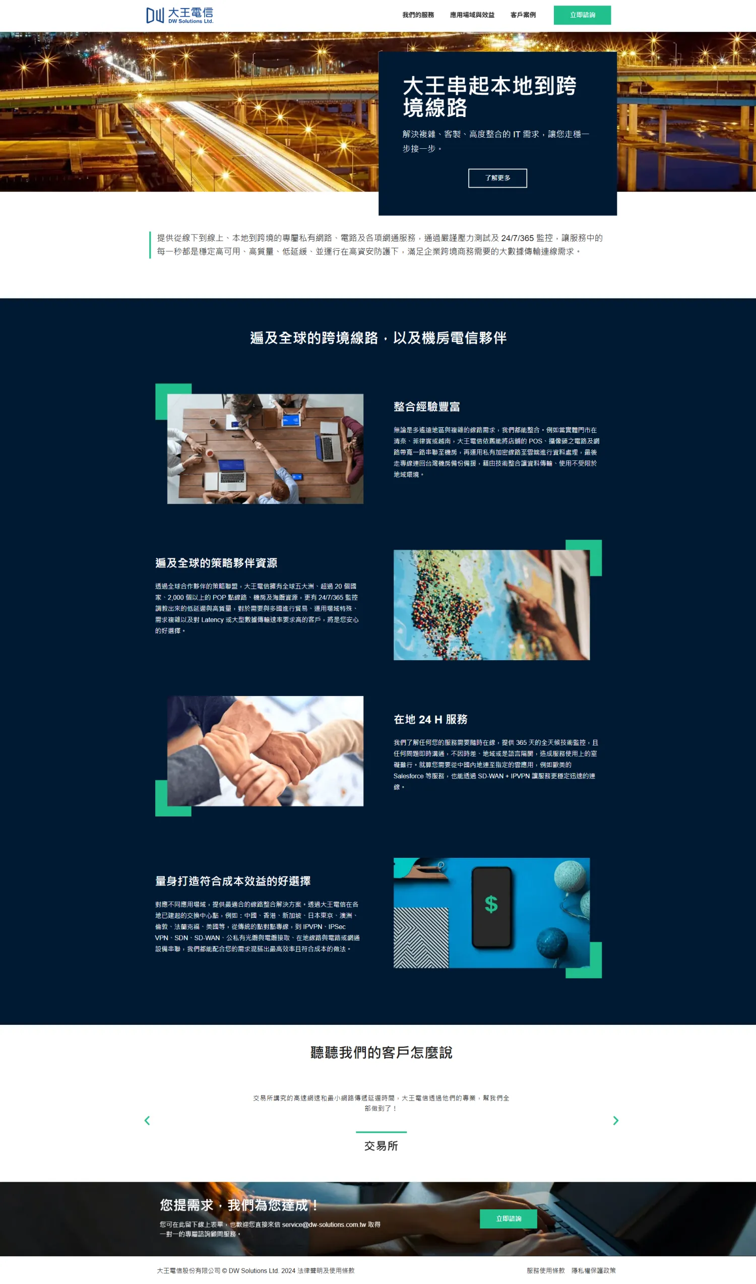 設計目標: 打造一個具備「專業感」與「技術」的平台,吸引需要跨境專網、低延遲連線與高資安需求的企業決策者。