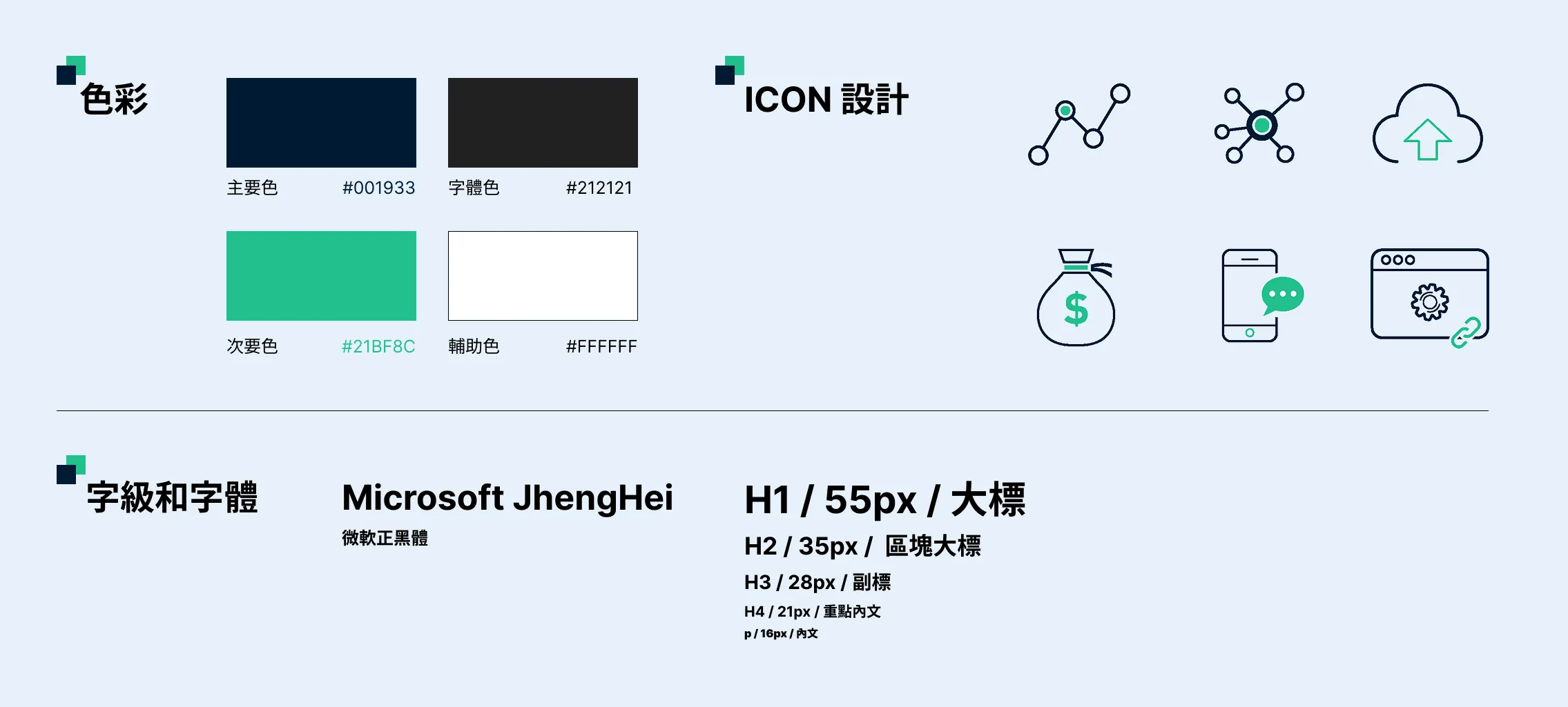 科技亮綠 (Connectivity): 象徵數據流動、連線成功與資安綠燈,用於關鍵按鈕(CTA)。